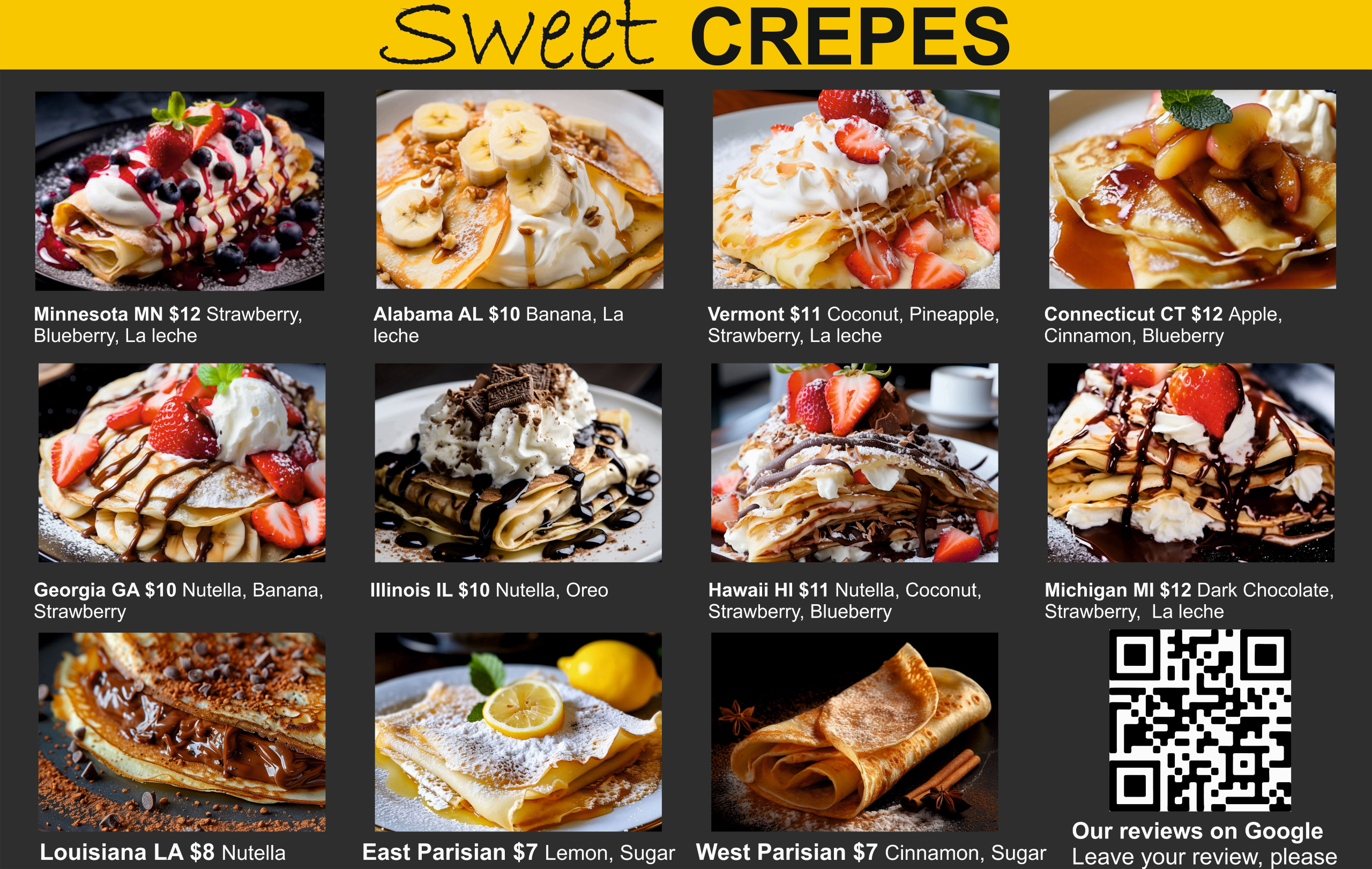 The minimum cost of the party is $499.We offer special conditions for all educational institutions, nonprofits, and charity events! Whether you're planning a delicious celebration or a unique experience, we’re happy to collaborate. Reach out to us to discuss the details! 📩🥞🚚 Travel Fee & Service AreaWe also charge a travel fee, calculated across five distance zones, ranging from $100 to $500 depending on your location.Our crepe stations and food trailers proudly serve a wide region —