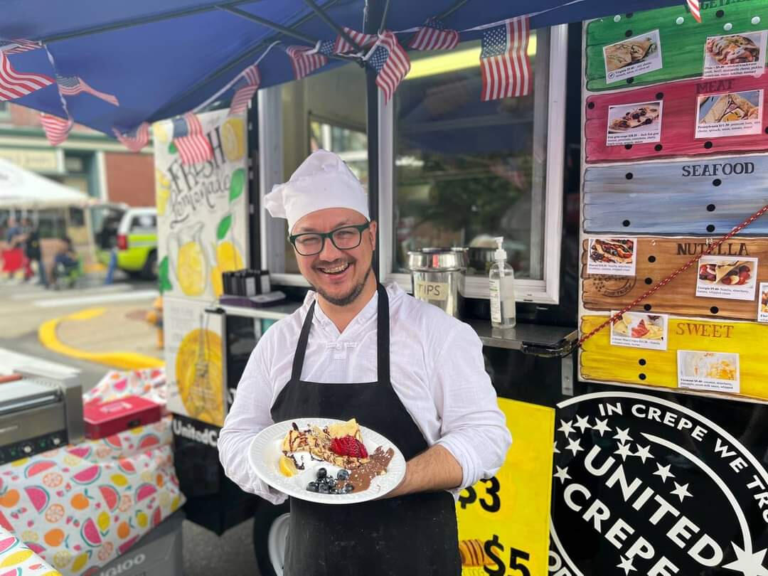 United Crepes of America started with a simple idea: to bring people together through the magic of crepes. Behind every fold and drizzle, there’s a story—one of passion, heritage, and a lifelong love for great food.Meet Eugene Vdovin, the heart and hands behind our crepes. A fifth-generation crepe maker, he grew up with the scent of sizzling batter filling his home. But before dedicating his life to the art of crepe-making, Eugene explored the corporate world. With a degree in history, law, and economics from university, he spent seven years managing the Siberian region for Microsoft. His journey then took him to Europe, where he worked as a lean management specialist at LSG Sky Chefs, gaining invaluable expertise in kitchen efficiency, food safety, and delivering top-quality meals.The passion for hospitality led Eugene to leave the corporate life behind and run his own hotel business—where guests fell in love with his signature breakfasts and custom dinners. Later, he gained hands-on experience in a large restaurant, where he not only perfected his craft but also shared his knowledge by teaching cooking classes for both kids and adults. Eager to refine his skills even further, he trained at the Culinary Institute of America in New York State. Finally, in 2022, he launched United Crepes of America, bringing his vision of perfect crepes to life.But no great adventure is ever a solo journey. United Crepes of America wouldn’t be possible without Ksenia Vdovina — Eugene’s wife, business partner, and the true backbone of the operation. A professional accountant, web designer, and a marketing genius, Ksenia ensures that every part of the business runs smoothly. From branding to bookkeeping, she’s the reason United Crepes of America thrives.From the very beginning, their family was thrilled about the idea and gave it their full support. Their daughters, Mia (6) and Eva (11), turned it into a friendly competition, always eager to lend a hand and be part of the action. Whether mixing batter, taking orders, or simply cheering from the sidelines, they made the business a true family affair—one that not only unites them but draws inspiration from their shared passion.Now, after three years of successfully growing food trailers, crêpe stations, and catering services, United Crepes of America is taking the next step. We’ve partnered with like-minded entrepreneurs to develop a franchise, sharing our success with those who want to bring the magic of crepes to new communities. Our goal is to introduce more people to the warmth of our kitchen, the richness of our traditions, and the unforgettable flavors of United Crepes of America.Together, we’re not just making crepes—we’re creating moments, traditions, and a taste of home wherever we go.Join us and experience the warmth, joy, and deliciousness of United Crepes of America.